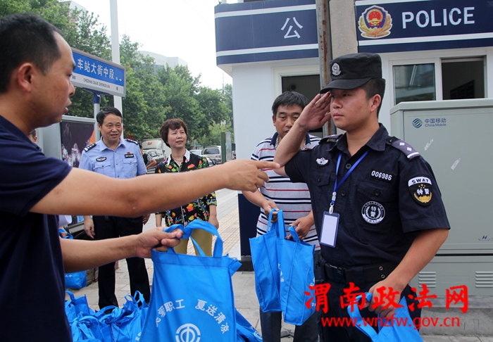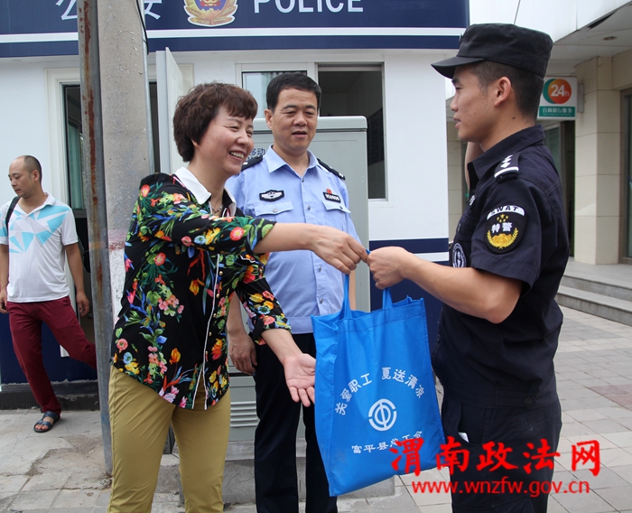 渭南政法网(特约通讯员 郎军杰)7月26日上午,富平县工会王品副主席一行到巡特警大队车站大街警务站,慰问一线执勤人员。县公安局党委委员,工会主席,纪委书记陈敏峰同志陪同。