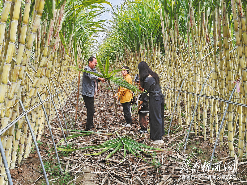 “今年引进黑皮、黄金两个品种。”吴琳边忙活边介绍,“种植甘蔗的关键是要把控好水肥,做好防虫杀菌。现在我们的甘蔗不仅能抢先上市,还能卖个好价钱。”