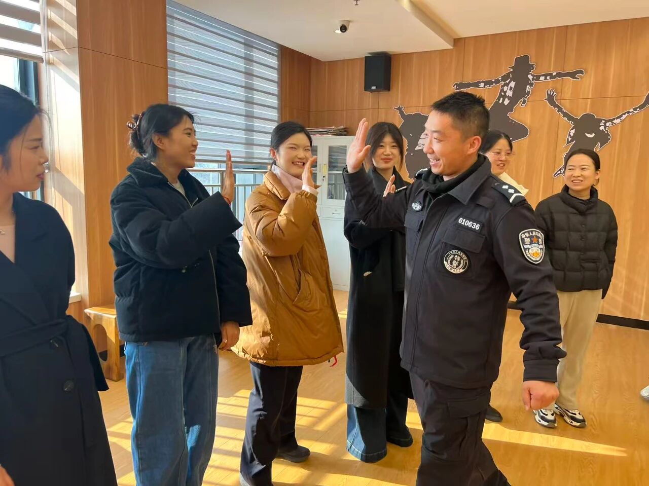 张青针对警务工作高强度、高压力以及文艺排练时间紧凑的特点,精心设计了以“放松、联结、赋能”为主题的团辅方案。活动在轻松愉快的氛围中展开,共分为三个渐进式环节。首个环节“破冰”,旨在快速打破隔阂,营造安全开放的交流环境。在她的引导下,参与民辅警通过简单的互动游戏和自我介绍,迅速拉近了彼此距离,现场笑声阵阵,排练带来的疲累感初步消解。