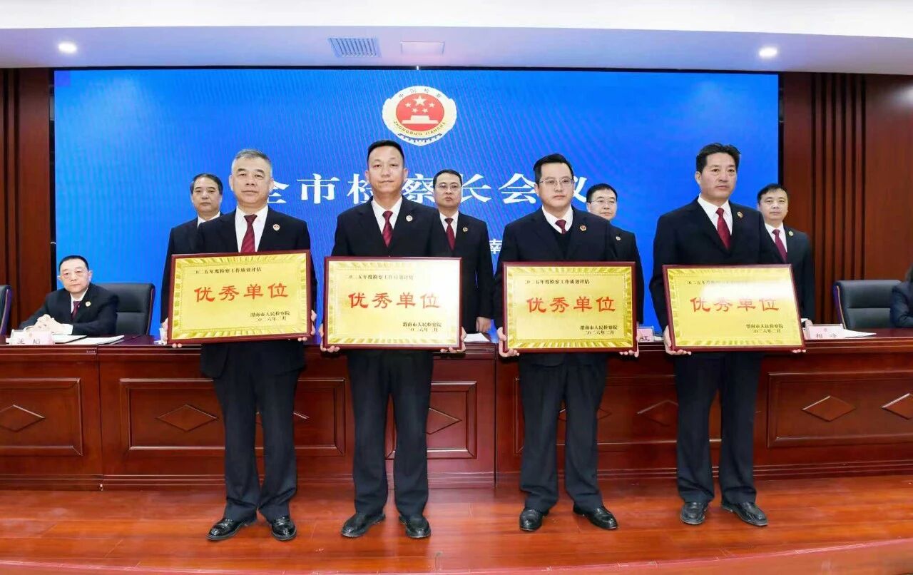 2月12日全市检察长会议召开,富平县人民检察院被评为“2025年度检察工作质效评估优秀单位”。院党组书记、检察长许军望上台领奖。