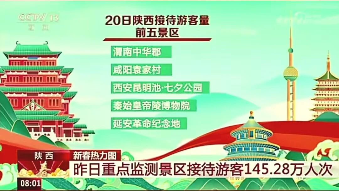 中华郡在陕西重点监测的55各景区中,接待量持续霸榜陕西新闻联播:富平中华郡景区“打卡中国年“。